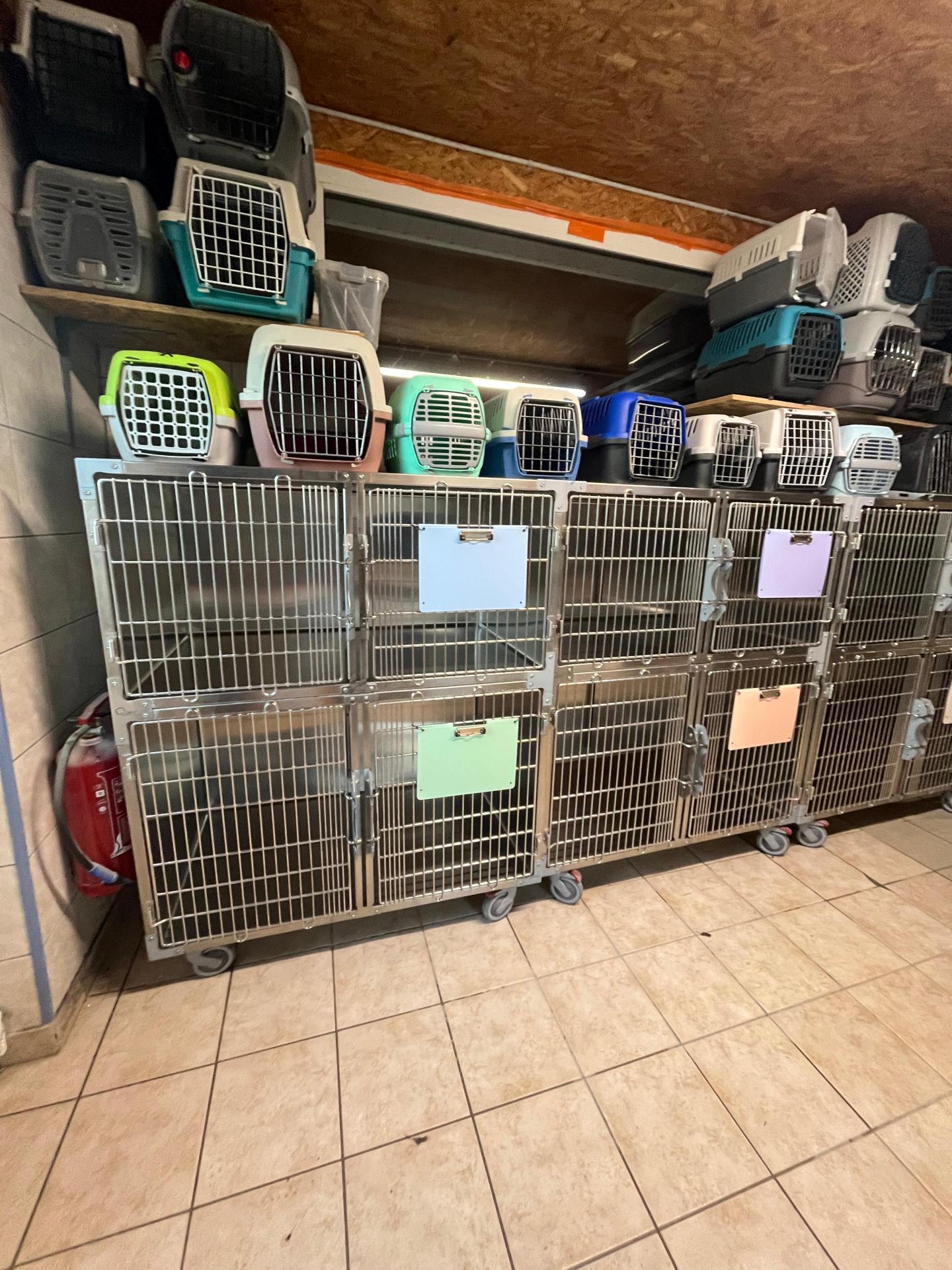 - 6 cages adaptées aux chats craintifs, équipées d’une paroi amovible permettant un nettoyage plus facile sans manipulation directe, réduisant ainsi le stress des animaux.